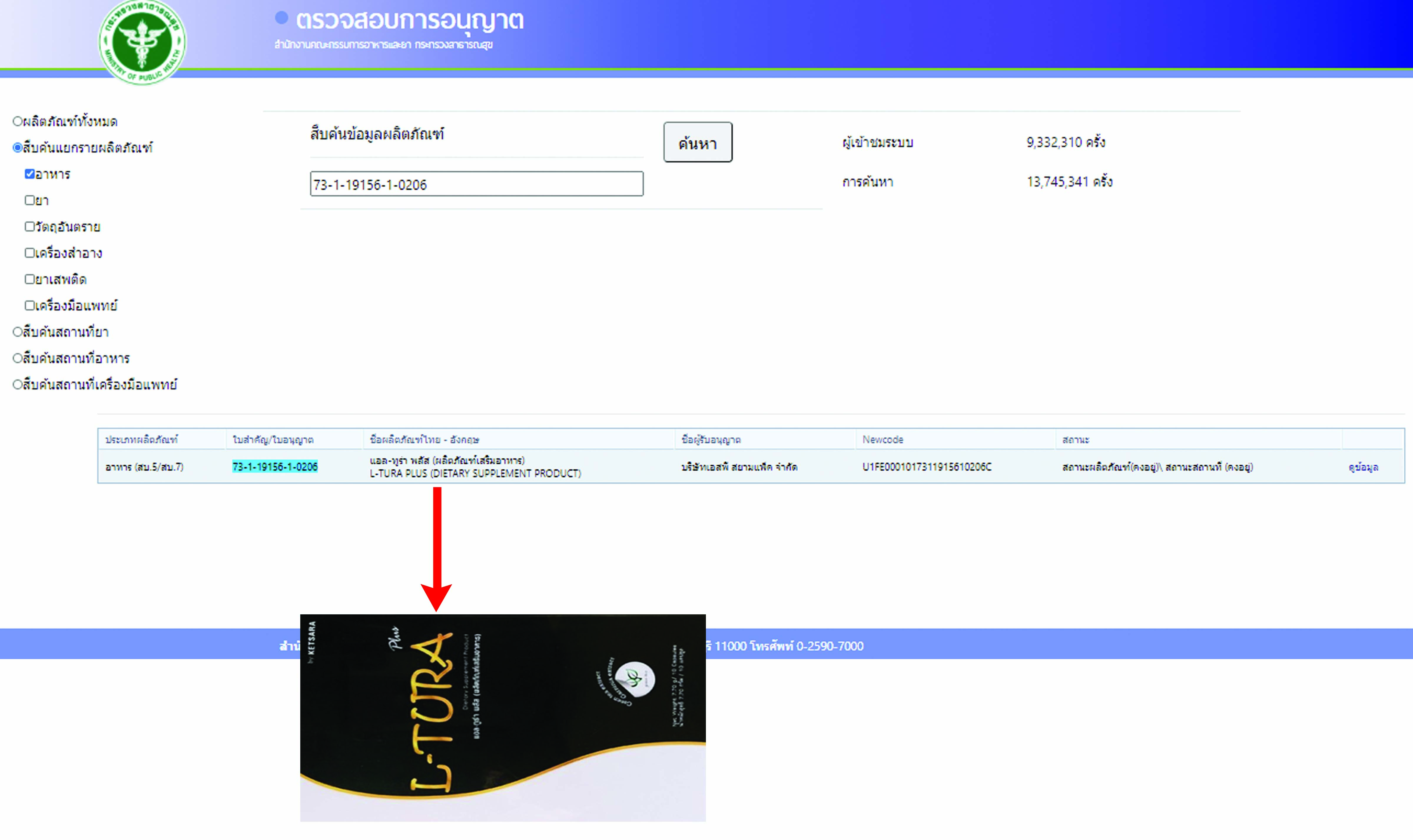 ผ่านการรับรอง อ.ย. ![]() แอลทูร่า เป็นผลิตภัณฑ์ที่ขายดีมาก ผลิตจากสารสกัดธรรมชาติ ปลอดภัย และได้รับการจดแจ้ง อ.ย. เลขที่ 73-1-19156-1-0206 เราเป็นร้านค้ารายใหญ่ ทั้งส่งออกและจำหน่ายในไทย สินค้าสั่งตรงจากบริษัทผู้ผลิตของบริษัทเกศราบ้านอมตะสมุนไพร มั่นใจได้ คุณลูกค้าได้สินค้าแอลทูร่า 10 กล่อง ของแท้ ราคาต่ำที่สุด เรารับประกันคุณภาพสินค้าทุกกล่องที่ซื้อกับเรา