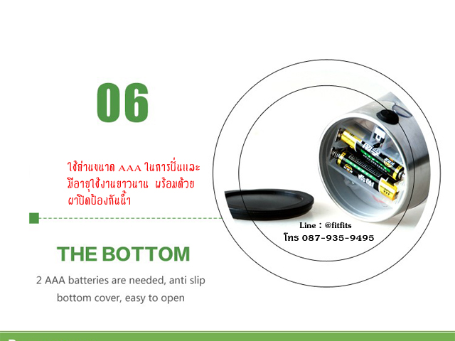 6) น้ำหนักเบามากเพียง 320g และใช้ถ่านก้อน AAA เพียง 2 ก้อน ก็สามารถใช้งานได้แล้ว